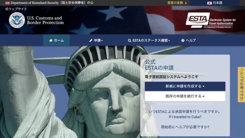 引用:Official ESTA Application Website(ESTA公式サイト)
